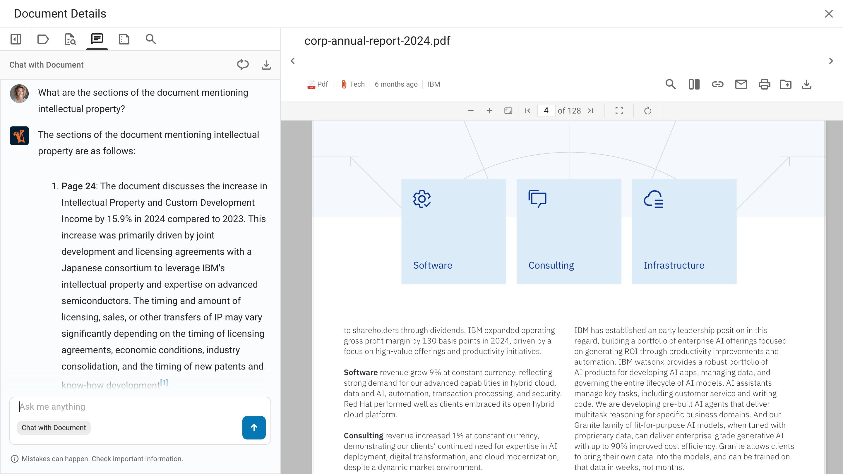 The document viewer automatically activates the Chat with Document agent.
